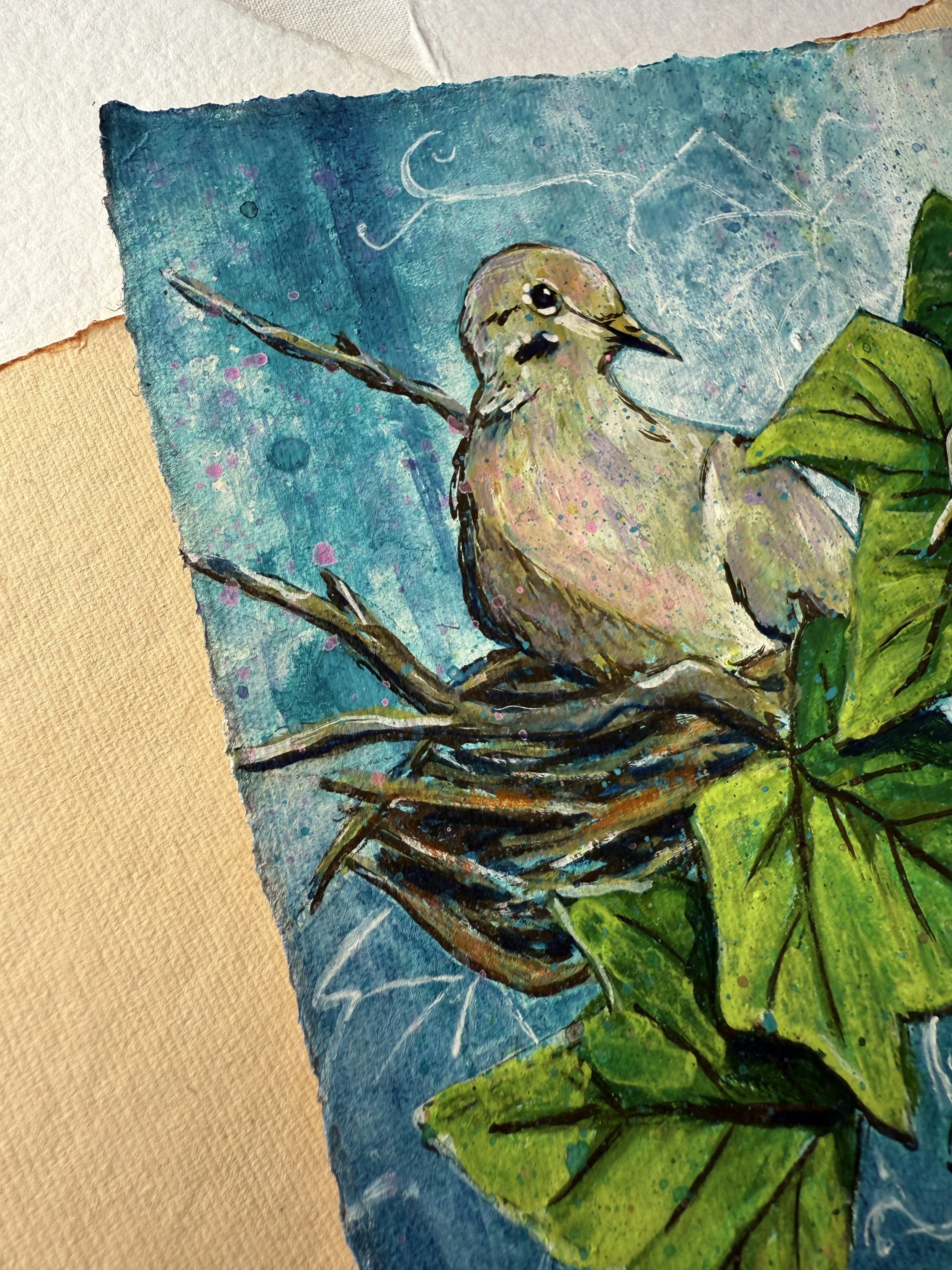 The Goldfinch is a series of four paintings created using watercolor, acrylic, and ink on cotton paper. Measuring approximately 8”x8” with deckled edges.